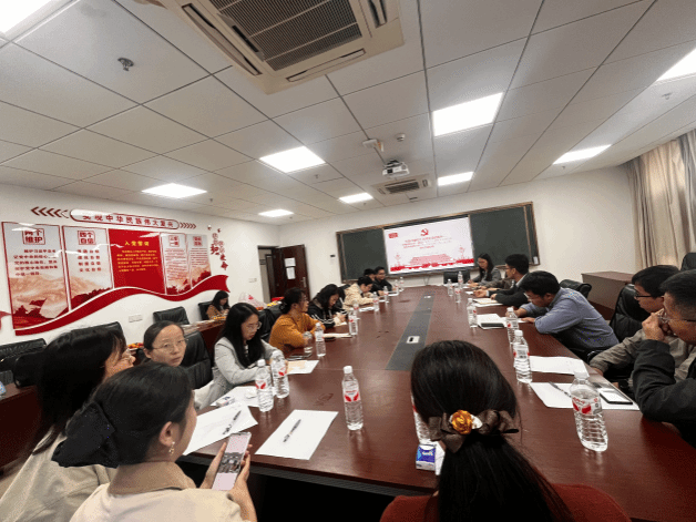 参观结束后,双方举行了专题座谈交流会,正式深化结对共建情谊、共商协同发展思路。座谈会开始,我院信息与计算系主任易鸣致辞,对来访支部表示热烈欢迎,简要介绍院系办学特色与学科优势,阐述数学与地学、医学交叉融合的探索方向,表达了校际优势互补、深化协作的意愿。湖北中医药大学信息工程学院王欢副书记随即致辞,感谢我方热情接待,介绍其学院及支部概况,强调支部共建对学科交叉、党建提质的重要意义,期盼搭建长效合作桥梁。