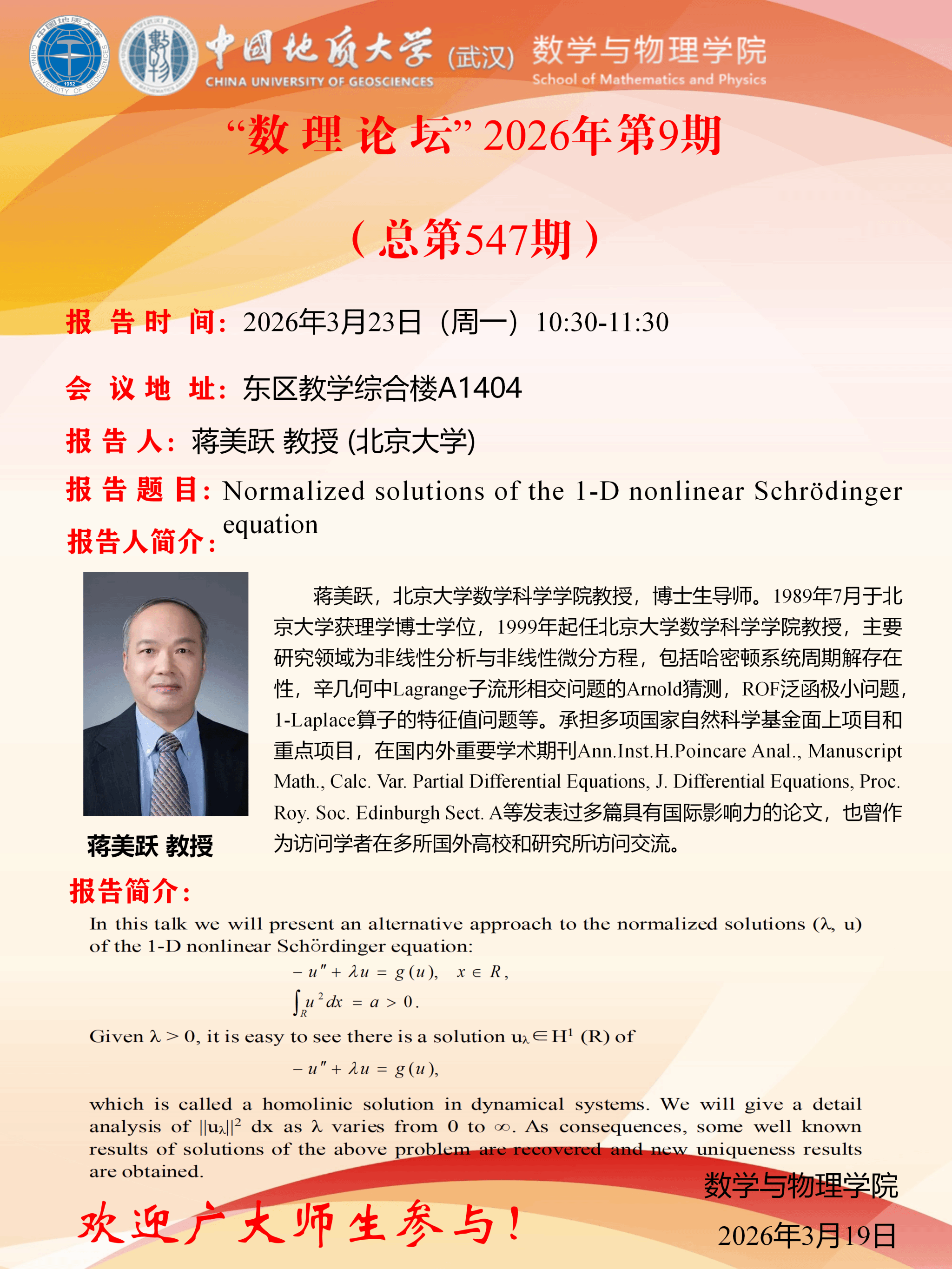 2026年3月23日蒋美跃教授学术讲座:Normalized solutions of the 1-D nonlinear Schrödinger equation